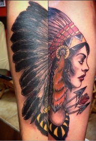 手臂新学校风格彩色恶魔的女人肖像纹身