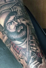手臂彩色受伤的吸烟妇女肖像纹身图案