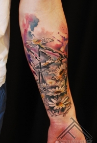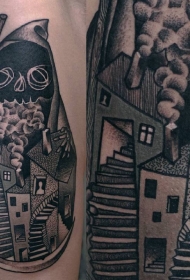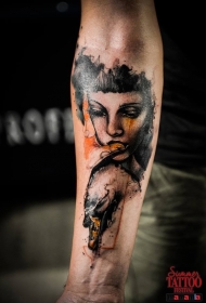 手臂彩色超现实主义风格的有趣的人体雕像纹身