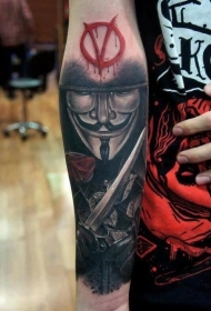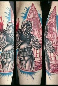 手臂插画风格彩色达斯·维德和帝国象征符号纹身