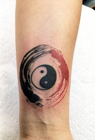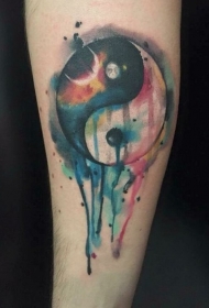 手臂彩色的小壶刻字与棒棒糖纹身图案