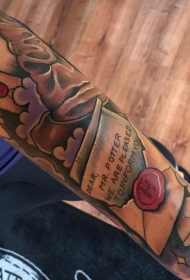 手臂滑稽的彩色哈利·波特电影怪物纹身