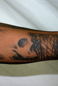 手臂黑灰雕刻风格的中世纪妇女骨架纹身