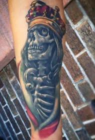 手臂彩色逼真的骷髅戴皇冠纹身图案