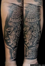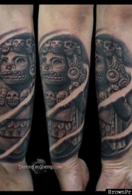 手臂石雕风格的古玛雅雕像纹身图案