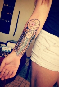 女性手臂插画式彩色梦捕网纹身