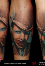 手臂逼真的彩色梅林曼森肖像纹身图案
