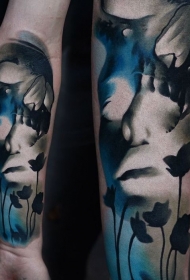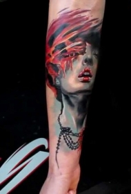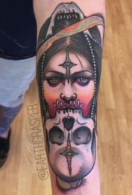 手臂令人毛骨悚然的神秘女人纹身图案