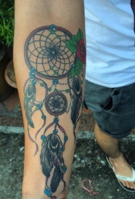 手臂新学校式彩色梦捕网纹身图案