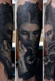 手臂现实主义风格的女人与头骨纹身