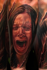 手臂令人毛骨悚然的尖叫女人纹身