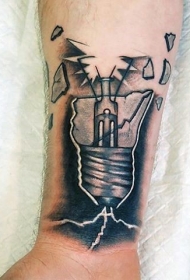 手臂黑灰逼真的打破灯泡纹身图案