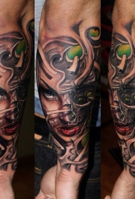 手臂现实主义风格彩色吸血鬼女人纹身