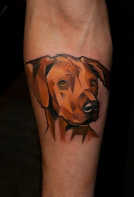手臂彩色逼真的小狗头像纹身图案