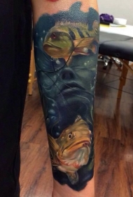 手臂现实主义风格的彩色妇女与鱼类纹身