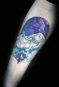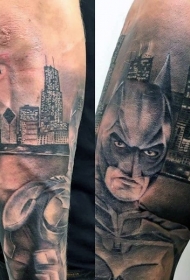 手臂插画风格的蝙蝠侠与夜间城市纹身
