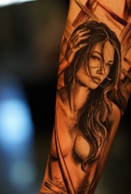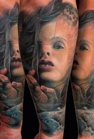 手臂现实主义风格的玫瑰与哭泣女人纹身