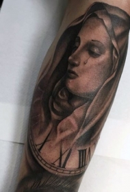 手臂雕刻风格的哭泣女人与时钟纹身图案