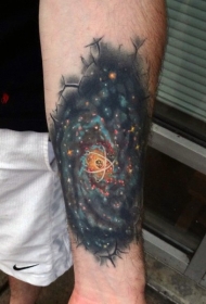手臂PS图象处理软件风格的彩色大树与字母纹身