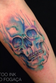 手臂PS图象处理软件风格的彩色恶魔头骨纹身