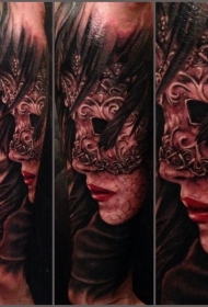 手臂墨西哥传统风格的彩色恶魔女人纹身