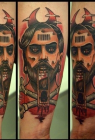 手臂逼真的彩色尖叫的野蛮人纹身图案