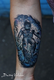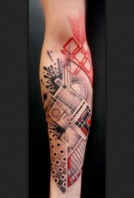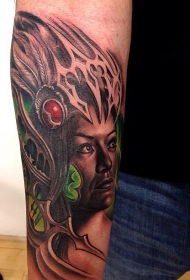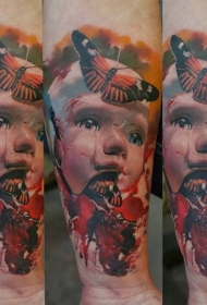 手臂彩色的超现实主义风格的娃娃与蝴蝶纹身