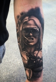 手臂令人毛骨悚然的小女孩与女人眼睛纹身