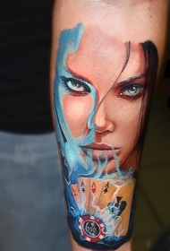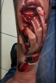 手臂令人毛骨悚然的彩色血腥的女人纹身