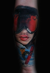 手臂彩色老学校沙漏与玫瑰花纹身图片