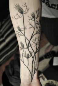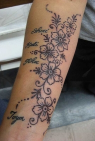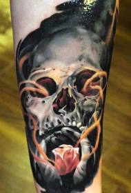 手臂逼真的神秘彩色骷髅与花朵纹身