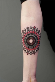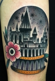 手臂彩色玫瑰花与魁地奇球纹身图案