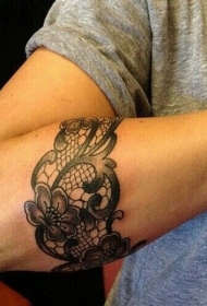 手臂逼真好看的玫瑰花与女人肖像纹身