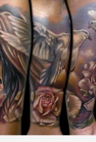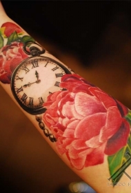 手臂雕刻风格的彩色玫瑰花纹身图案