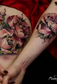 小臂和大腿典型的彩色几何玫瑰纹身图案
