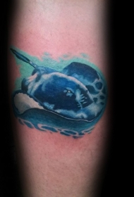 小臂怪异的彩色纹身大鱼与骷髅图案