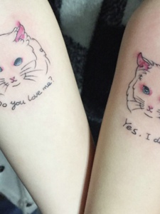 90后小情侣有着可爱的小花猫纹身