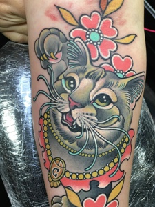 手臂小花猫纹身图片很抢眼