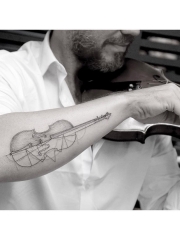 男生手臂上黑色几何简单线条帅气小提琴纹身图片