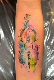 卡通般的彩色老式麦克风和小提琴手臂纹身图案