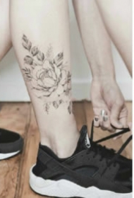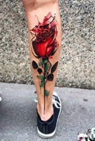 小腿玫瑰花纹身:9张小腿上漂亮的一组玫瑰花纹身图案