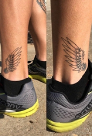 天使翅膀纹身素材 男生小腿上黑灰的翅膀纹身图片
