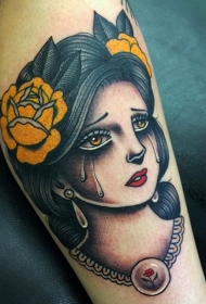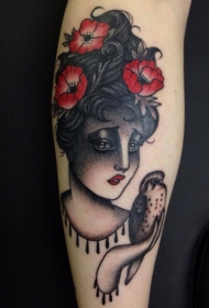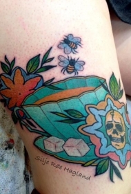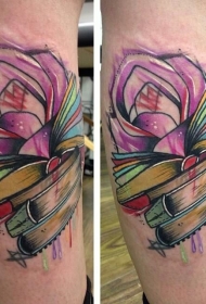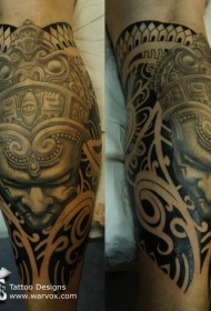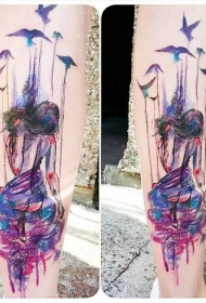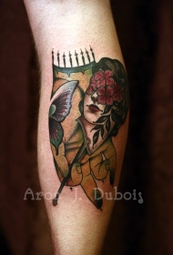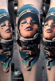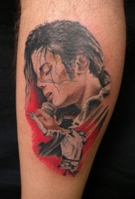 腿部彩色迈克尔·杰克逊肖像纹身图案