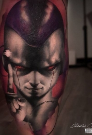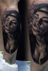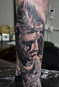 腿部新的学校风格茶杯与玫瑰花纹身图案