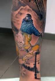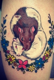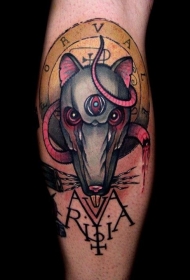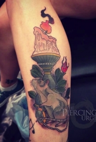 腿部新学校风格的彩色老鼠蜡烛纹身