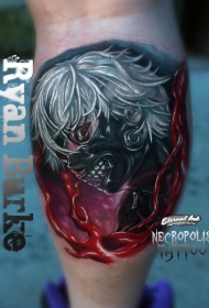 腿部恐怖风格彩色血腥男子肖像纹身图片
