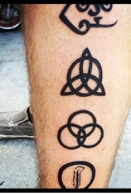 几何纹身图案 男生小腿上黑色几何纹身图片