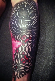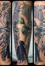 小腿有趣的黑暗森林与人类剪影纹身图案