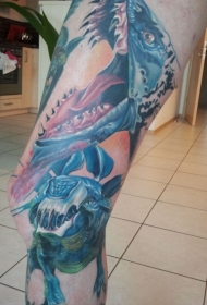 小腿惊人的彩色幻想吸血鬼纹身图案