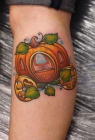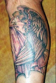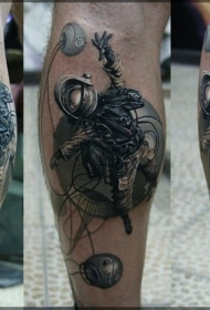 小腿漫画风格彩色战士与扑克牌纹身图案